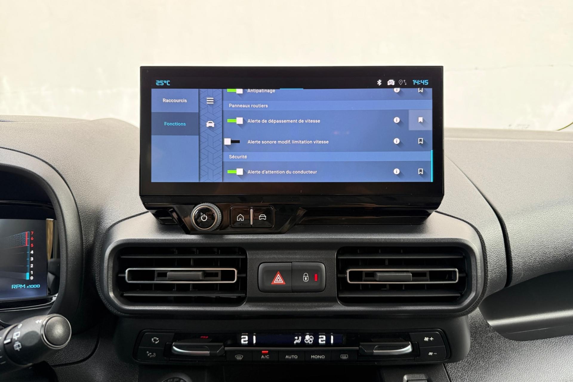 3 sièges arrière indépendants escamotables en rang 2ABS avec aide au freinage d'urgenceAide au démarrage en côteAide au stationnement arrièreAirbags frontaux, latéraux AV et rideauxAllumage automatique des projecteursAmbiance Urban GreyBarres de toit longitudinales noires brillantesBluetoothBoîte à gants inférieure ferméeBoîte à gants Top Box réfrigéréeCaméra de recul avec Top Rear VisionCapucine de pavillonClimatisation automatique bi-zoneCombiné Numérique 10'' couleurCommutation automatique des feux de routeContrôle dynamique de stabilité (ESP) et antipatinage des roues (ASR)Coques de rétroviseurs noir vernisDétecteur de sous-gonflageESCEssuie-glace à déclenchement automatiqueFeux diurnes Eco LEDFonction Mirror Screen (Apple Carplay / Android Auto ) sans filFrein de stationnement électriqueHayon arrière vitré avec essuie-glace et dégivrageJantes alliage noir 16'' STARLITLève-vitres avant et arrière (rang 2) électriques et séquentielsLunette arrière ouvrante surteintéePack Safety (Avertisseur de risque de collision, Freinage automatique d'urgence, Reconnaissance des panneaux)Pneumatiques 205/60 R16 96HPorte latérale coulissante droitePorte latérale coulissante gaucheProjecteurs antibrouillardProjecteurs EcoLEDRadio numérique DAB sur écran tactile 10" couleur HDRégulateur et limiteur de vitesseRétroviseurs extérieurs rabattables électriquementRétroviseurs extérieurs réglables électriquement et dégivrantsSiège conducteur à réglage lombaire avec accoudoirSiège passager individuel rabattable avec accoudoirTablette arrière cache-bagages à 2 positionsTablette aviation au dos des sièges avantVitres fixes en rang 3Vitres surteintées sur rangs 2 et 3Volant multifonctions cuirVOEUTVA RécupérablePas de MALUS ni TVTS