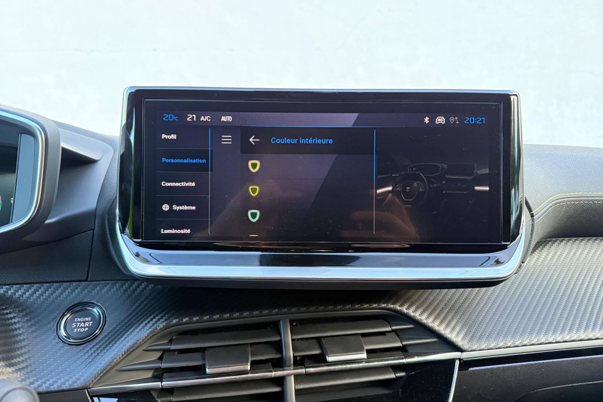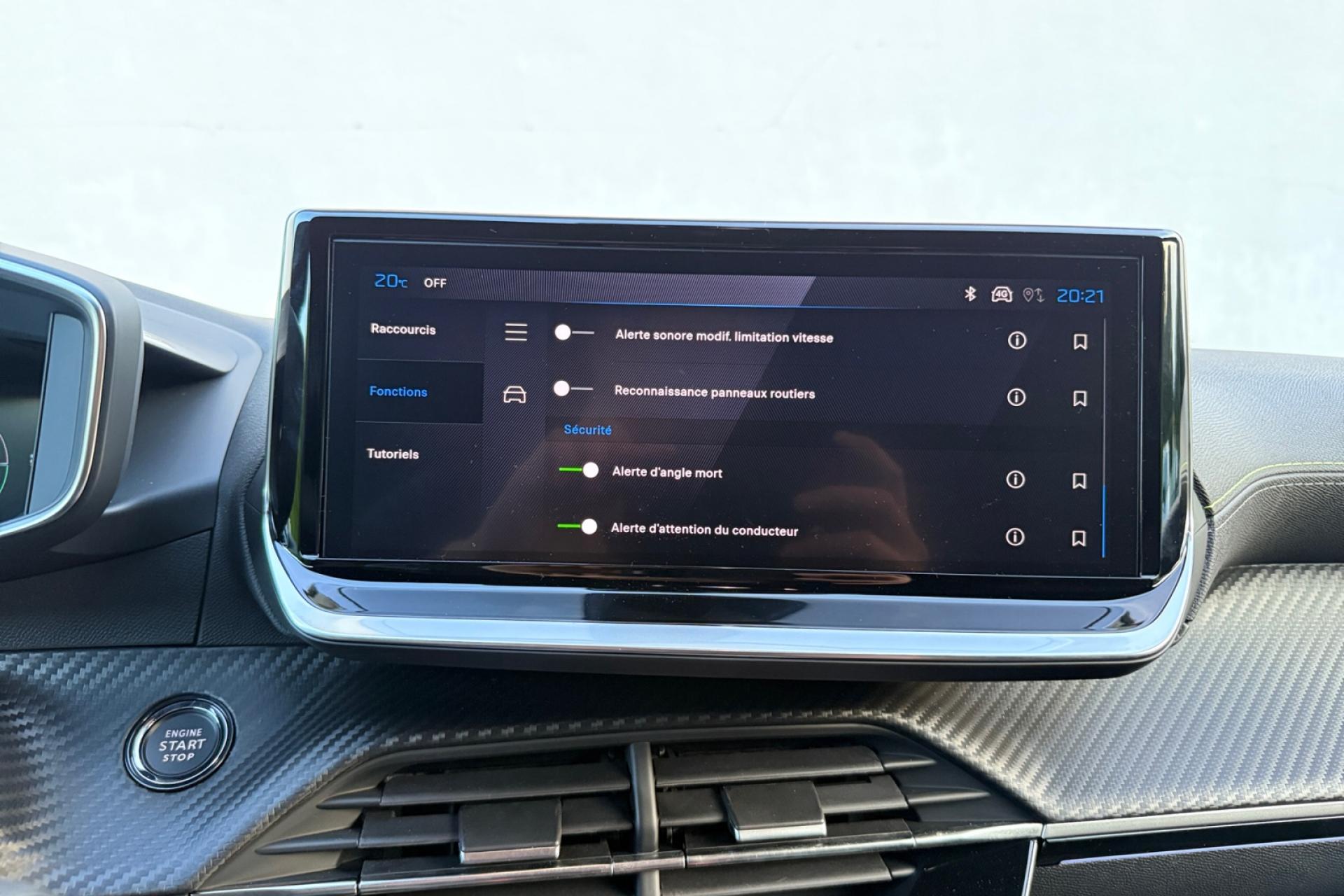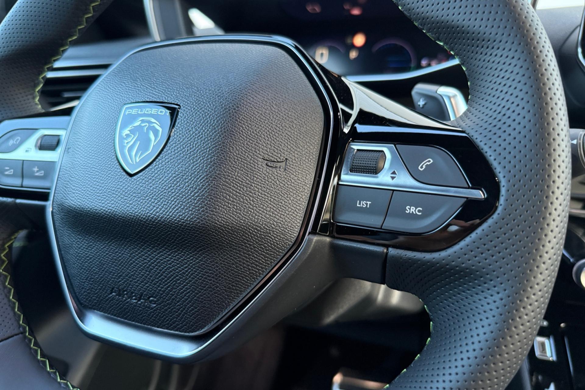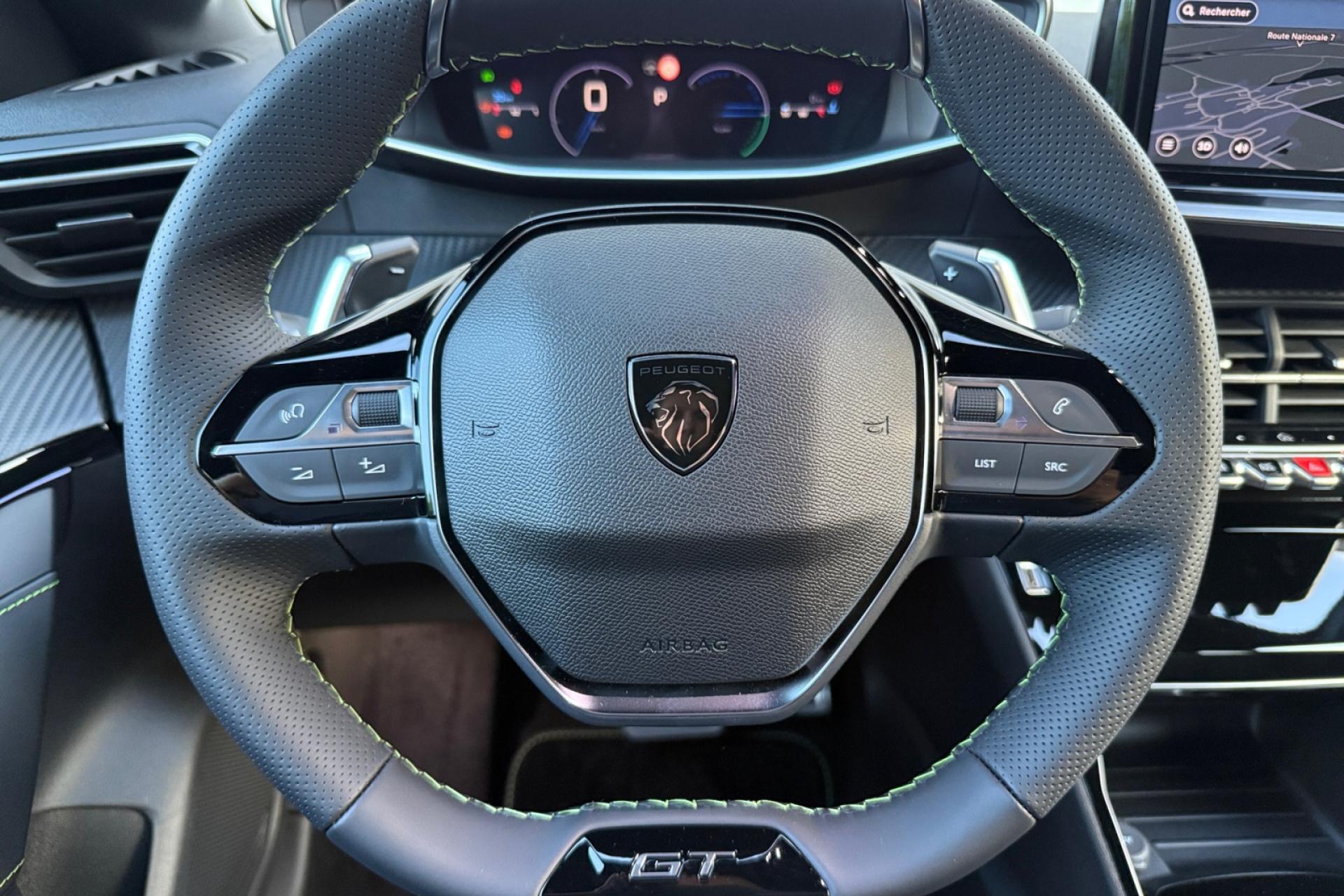 6 haut-parleurs (2 tweeters et 2 woofers à l'avant et 2 haut-parleurs à l'arrière)ABS (Antiblocage de roues)Accès et démarrage mains libres ProximityAccoudoirs de porte avant et arrière en TEP avec surpiqûre AdamiteAFU (Assistance au freinage d'urgence), REF (Répartiteur Electronique de Freinage)Aide au démarrage en côteAirbags frontaux auto-adaptatifs, latéraux avant (thorax et abdominaux), rideaux avant et arrièreAllumage automatique des projecteursAntenne de toit « aileron de requin »Antipatinage ASRBandeau entre feux arrière noir brillantBanquette arrière rabattable 1/3-2/3Becquet rapporté Noir brillantBoitiers de rétroviseurs extérieurs noir brillantCalandre Haute de gamme noir grainée avec marquage couleur caisseClimatisation automatique mono-zoneCommandes d'ouverture extérieures peintes couleur caisseCommutation automatique des feux de croisement et de route, Light AssistConsole haute avec accoudoir intégréContrôle de stabilité de la remorque (TSM)Contrôle Dynamique de stabilité (DSC)Contrôle électronique de stabilité (ESC)Détecteur de sous-gonflage indirectDirection assistée électriqueEclairage à LED partie basse rangement et caves à piedsEclairage avant I DOME à LED (1 plafonnier et 2 liseuses) + 2 liseuses à LED à l'arrièreEclairage polyambiant 8 couleurs (Liés aux modes de conduite)Elargisseurs d'ailes noirs brillantEnjoliveur DRL noir grainéEnjoliveur supérieur de calandre noir grainéESP déconnectable (Contrôle électronique de trajectoire)Feux arrière signature 3 griffes, stop, recul et indicateur de direction à LEDsFixations ISOFIX Top Tether pour les places latérales arrièreFrein de stationnement électriqueHabitacle et ciel de pavillon noirJantes alliage 17'' ‘YANAKA’ diamantées bi-tons vernis brillant et Noir Orbital avec inserts Noir Orbital et vernis matJupes de pare-chocs arrière inférieure et supérieure noir brillantLécheurs de vitres latérales noir brillantLève-vitres électriques avant et arrière, séquentiels et antipincementPack i-Connect (Ecran tactile 10" HD, Radio DAB, Fonction Bluetooth, Mirror Screen sans fil pour Apple CarPlay/ Android Auto)Pack Safety (Alerte active de franchissement, Freinage automatique d'urgence, Reconnaissance étendue des panneaux, Régulateur et limiteur de vitesse)Pédalier Sport AluminiumPeugeot i-Cockpit 3D avec combiné tête haute 10" numériquePlanche de bord Slush avec Décor Carbone slush et double surpiqûres Adamite/Tramontane et baguette Noir brillante avec jonc chromé et jonc lumineuxProjecteurs Peugeot Full LED Technology avec feux diurnes à LED 3 griffesRétroviseur intérieur électrochromeRétroviseurs extérieurs réglables, rabattables électriquement et dégivrantsSélecteur de mode de conduite (ECO / NORMAL / SPORT)Sellerie tissu Belomka accompagnement TEP Isabella tri-matière Uni Capy et surpiqûres Vert AdamiteSeuil de portes lettrage PEUGEOTSeuils de portes en aluminiumSiège conducteur avec réglage manuel en hauteurSiège passager à réglage manuel en hauteurVerrouillage automatique de tous les ouvrants en roulantVisio Park 1Vitres latérales arrière et lunette arrière chauffante temporisée surteintéesVolant compact cuir fleur avec commandes multimédia intégrées et badge GTVolant réglable en hauteur et en profondeur