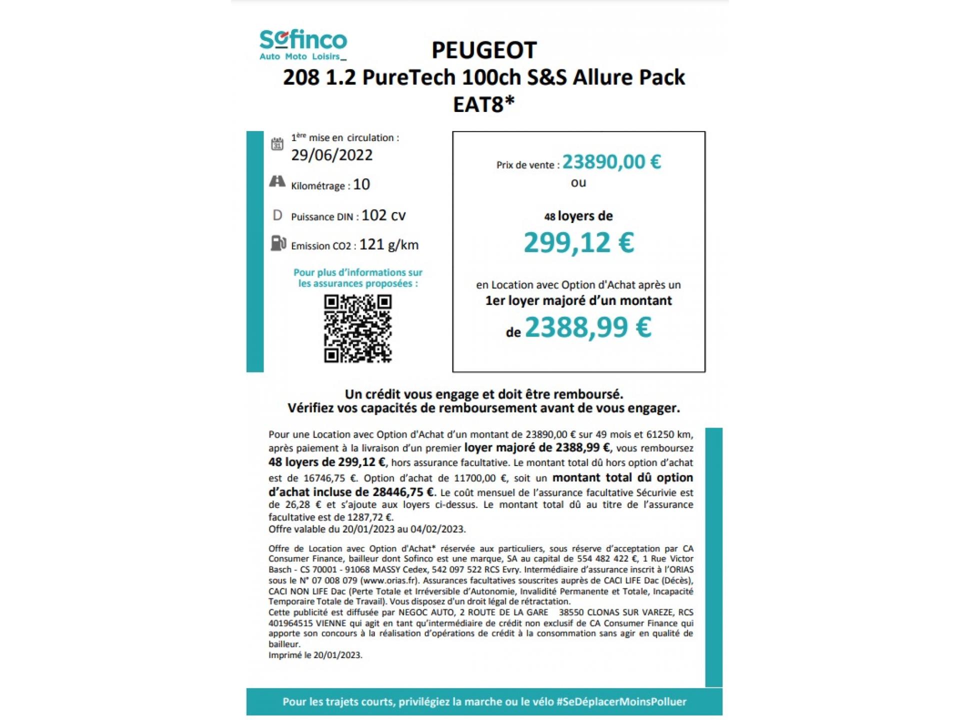 Nous vous proposons cette PEUGEOT 208 au prix de 23 890 €, celle-ci a au compteur 10 km.
