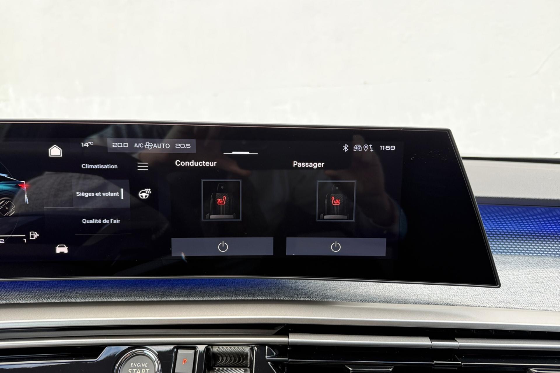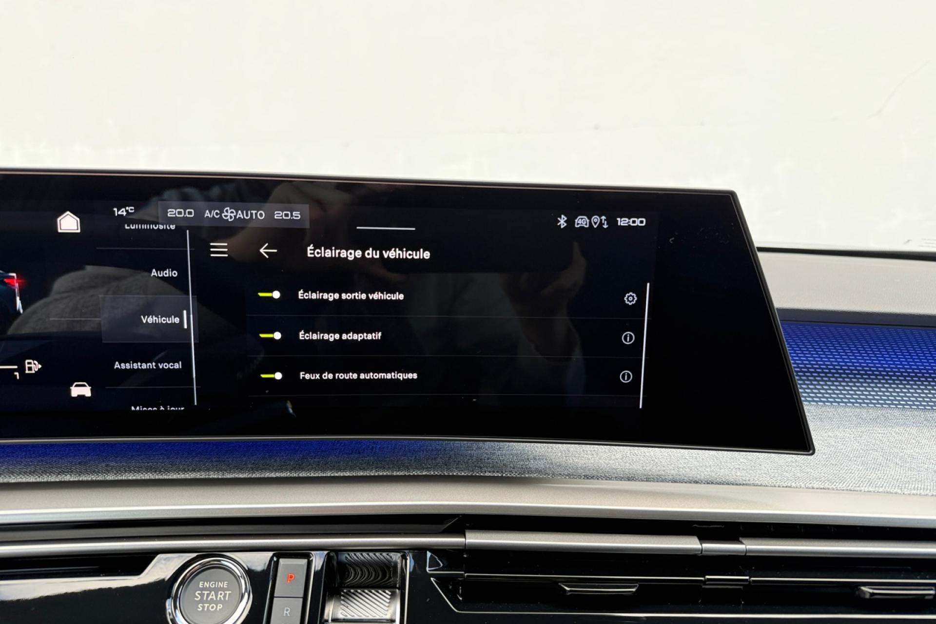 1 prise 12 V dans la console centrale1 prise USB C (Data & charge) et 1 prise USB C (Charge) à l'avant2 ports USB-C de recharge à l’arrière6 haut-parleurs (2 tweeters et 2 woofers à l'avant et 2 larges bandes à l'arrière)Accès et démarrage mains libres ProximityAir conditionné à régulation automatique 2 zonesAirbags frontaux conducteur et passager adaptatifs (airbag passager déconnectable)Airbags latéraux conducteur et passager avantAirbags rideaux de tête aux places avant et arrièreAlerte active de franchissement involontaire de ligne et bas côtéAlerte attention conducteurAlerte Risque Collision (ARC)Allumage automatique des projecteursAllumage automatique et commutation adaptative des projecteursBandeau entre les feux arrière Noir laqué avec lettrage 'Peugeot’Bandeau entre les projecteurs Noir laqué avec logo '3008’Calandre couleur carrosserieCommutation automatique des feux de routeConsole centrale avec décor tissu RIMINI chiné, façade Noir laqué et jonc Gris Stène, accoudoir tissu RIMINI chinéDécor inférieur Gris MeteorDétection de sous-gonflage indirecteDossiers de banquette arrière rabattable 40/20/40 avec accoudoir central arrièreEclairage d'ambiance indirect, jour & nuit sur la planche de bord, les panneaux de portes avant et sous l'écran panoramique 21'', associé aux modes de conduite, personnalisable en 8 couleursEclairage de la boîte à gant LEDEclairage LED des caves de pieds avantEcopes latérales Noir laquéEnjoliveurs de passages de roues Noir grainéESP avec aide au démarrage en penteEssuie-glace à déclenchement automatiqueFeux AR à griffes 3D LEDsFixations ISOFIX Top Tether pour les places latérales arrièreFonction Bluetooth, Mirror Screen sans fil (Apple CarPlay/ Android Auto)Frein de stationnement électriqueFreinage d'urgence automatique piloté par caméra et radarHabitacle et ciel de pavillon noirHayon électrique mains libresJantes alliage 19'' diamantées BREDA Noir Orbital, vernis brillantJupe arriere inférieure Noir grainéJupe avant inférieure Noir grainéLampe LED dans le vide-poches de la console centraleLécheurs de vitres masquésLève-vitres électriques avant et arrière, séquentiels et antipincementLimiteur de vitesseMonogrammes arrière ' HybridMonogrammes arrière '3008'Navigation 3D ConnectéePanneaux de portes avec décor tissu RIMINI chiné, décor d’alcôve en Aluminium sérigraphié et jonc Gris Stène, accoudoirs TEP Isabella, surpiqûres Iced Clay à l'avantPare-brise feuilleté et acoustiquePare-chocs arrière avec décor Gris MeteorPédalier et repose-pied aluminiumPeugeot i-Cockpit panoramique avec écran incurvé et flottant 21’’ HDPeugeot i-Connect AdvancedPeugeot i-Toggles virtuels avec 10 raccourcis personnalisablesPlafonnier avant et liseuses arrière DOME à LEDPlanche de bord moussée avec décor tissu RIMINI chiné, décor d’alcôve en Aluminium sérigraphié, façade et aérateurs Noir laqué avec décor Gris StènePlancher de coffre modulable 2 positionsProjecteurs Peugeot Pixel LED avec feux diurnes 3 griffes à LEDProtections inférieures de portes noires grainéesRadio Numérique DABReconnaissance étendue des panneaux de signalisation et préconisation de vitesseRégulateur de vitesse adaptatif avec fonction Stop & GoRétroviseur intérieur électrochromeRétroviseurs extérieurs dégivrants à réglage et rabattement électriques, éclairage de seuilSellerie tissu NEW UZIRIS embossé accompagnement TEP Isabella, écharpe tissu RIMINI chiné, surpiqûres Iced ClaySeuil de portes avant inox avec lettrage ‘Peugeot’Siège conducteur avec réglage lombaire manuelSièges avant avec réglage manuel en hauteurSièges avant chauffantsSièges avant chauffants, siège conducteur certifié AGRSurtapis avant et arrière avec surpiqûres Iced ClayToit et becquet arrière Black DiamondVisiopark 1 (Caméra de recul)Vitres arrière, custodes et lunette arrière surteintéesVolant chauffantVolant compact, cuir fleur lisse et perforé avec commandes intégrées Noir Laqué, décors Gris Stène , surpiqûres Iced Clay, insert Noir laqué avec badge ‘GT’