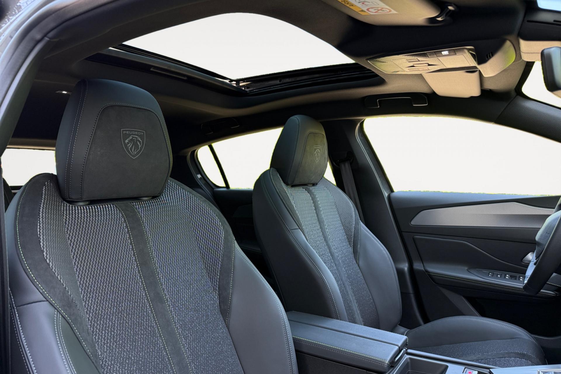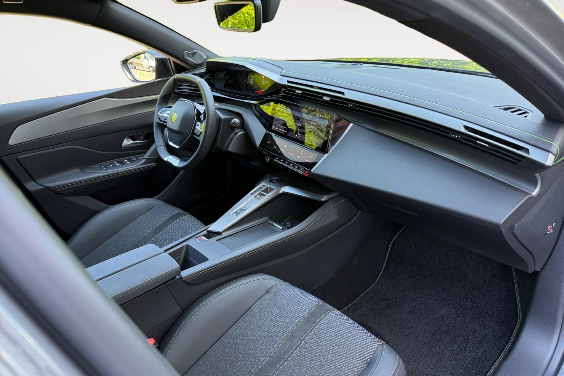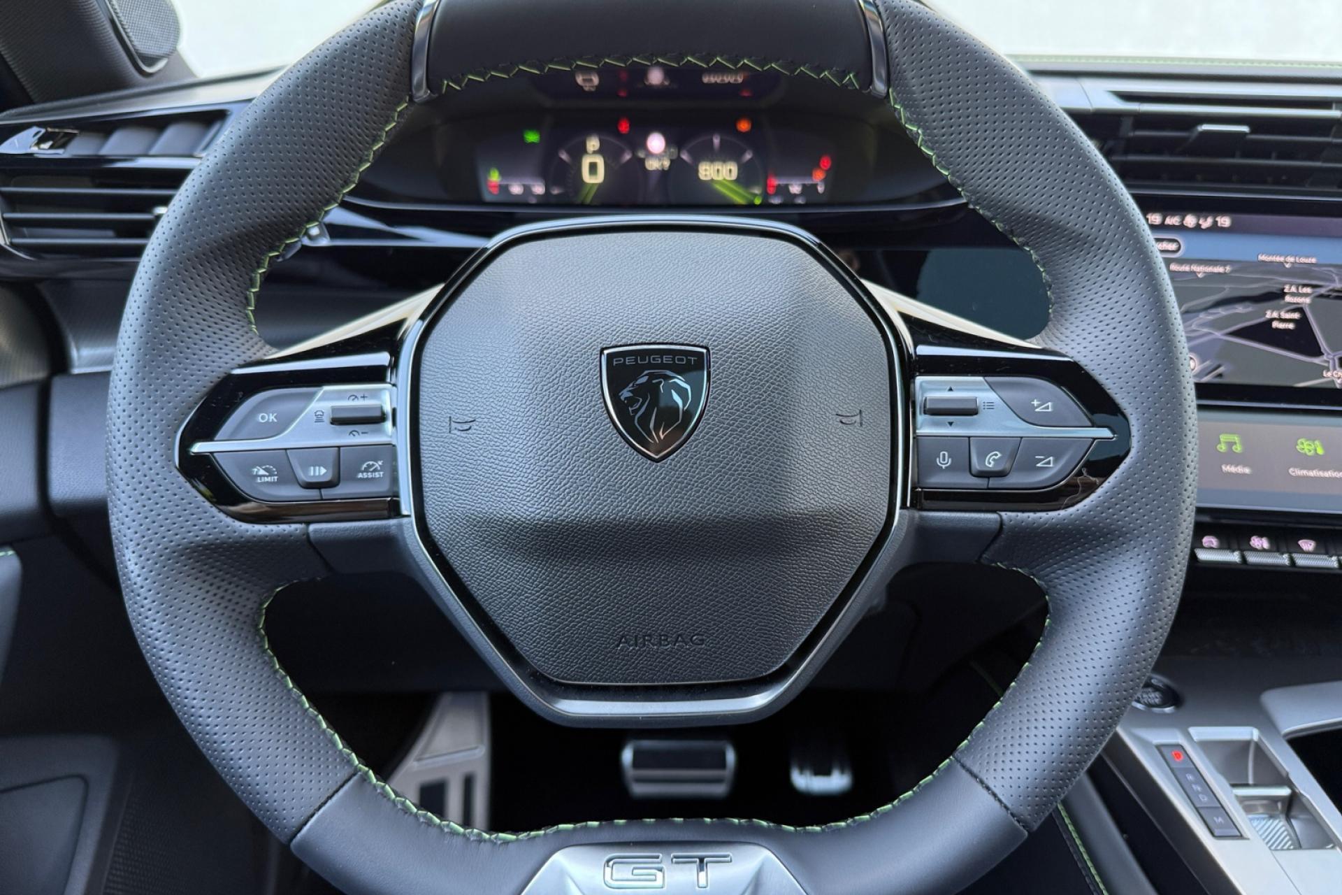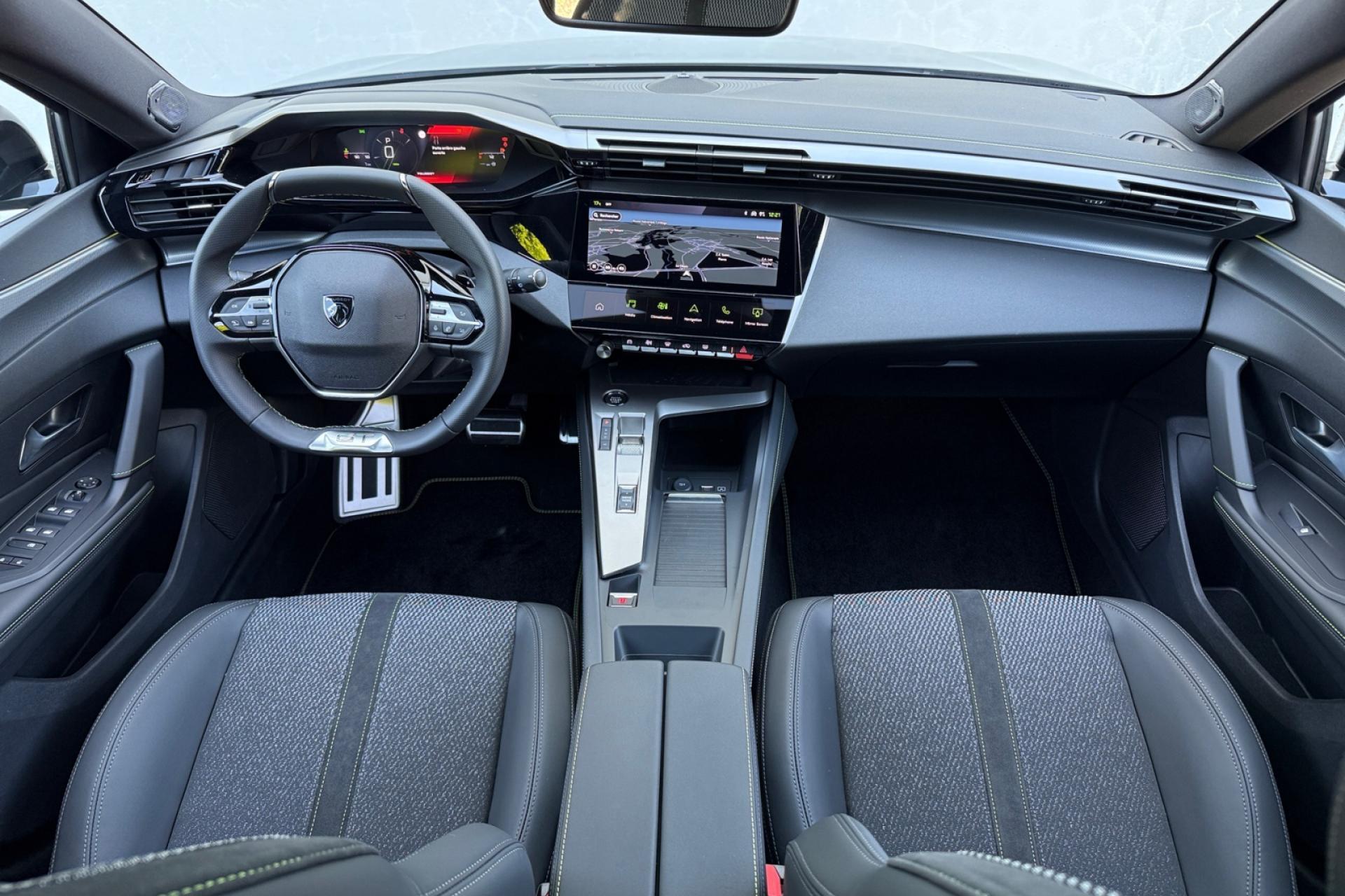 Accès et démarrage mains-libresAccoudoir central avant avec rangementAide au stationnement arrièreAide au stationnement avantAir conditionné à régulation automatique 2 zonesAirbags frontaux conducteur et passager adaptatifs (passager neutralisable), latéraux avant et rideaux avant et arrièreAlerte active de franchissement involontaire de ligne et bas côtéAlerte attention conducteurAllumage automatique des projecteursBandeau entre feux arrière noir brillantBanquette arrière rabattable 1/3-2/3Calandre avant spécifique Noir verni avec inserts chromés et écopes Noir BrillantCaméra de reculCiel de pavillon noirCommutation automatique des feux de routeDécor Aluminium sur panneaux de porteDétection de sous-gonflage des pneumatiquesDiffuseurs d'air aux places arrièreDirection assistée électriqueDriver Sport Pack : personnalisation du combiné spécifique, sonorité du moteur amplifiée et plus sportive ( désactivable)ESP (contrôle dynamique de stabilité ) + aide au démarrage en penteEssuie-glace à déclenchement automatiqueFeux arrière spécifiques avec allumage dynamique griffe à griffeFeux diurnes à LED avec signature lumineuseFixations Isofix (aux places latérales arrière)Fonction Mirror Screen (Apple Carplay / Android Auto ) sans filFrein de parking électriqueJupe arrière en noir brillant avec jonc chroméLécheurs de vitres noir brillantLève-vitres électriques arrière à fonctions séquentielle et anti-pincementLève-vitres électriques avant à commande séquentielle et anti-pincementLimiteur de vitesseModes de conduite Eco / SportNavigation connectée avec écran central tactile 10‘’ et i-Toggles virtuels personnalisablesPack Drive AssistPack Safety PlusPare brise teinté acoustiquePédaliers Sport et repose-pied en AluminiumPeugeot i Cockpit avec combiné d'instrumentation numérique 10'' personnalisablePlanche de bord avec jonc transversal peint, décor Alu et surpiqûres VertProjecteurs Matrix LEDReconnaissance étendue des panneaux de circulationRéglage lombaire conducteurRétroviseur intérieur électrochromeRétroviseurs extérieurs électriques avec clignotants à LED intégrés, dégivrants et rabattables électriquementSellerie tri matières tissu / TEP / New BelomkaSeuils de portes avant en aluminiumSièges conducteur et passager réglables en hauteurSmart Multidrive : personnalisation du combiné et éclairage d'ambiance LED intérieur associés aux modes de conduiteVitres latérales et lunette arrière surteintéesVolant à réglage manuel en hauteur et en profondeurVolant cuir
