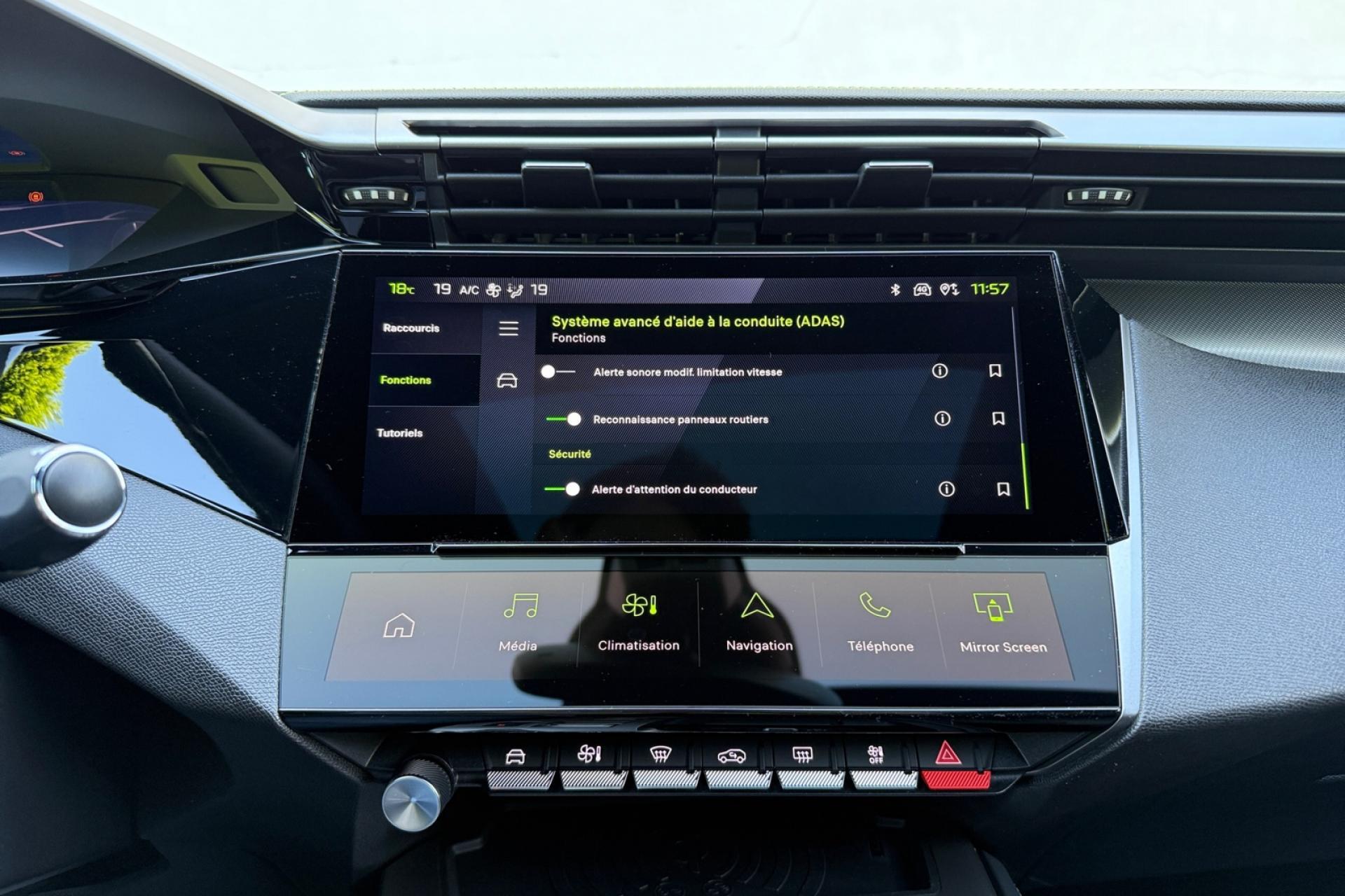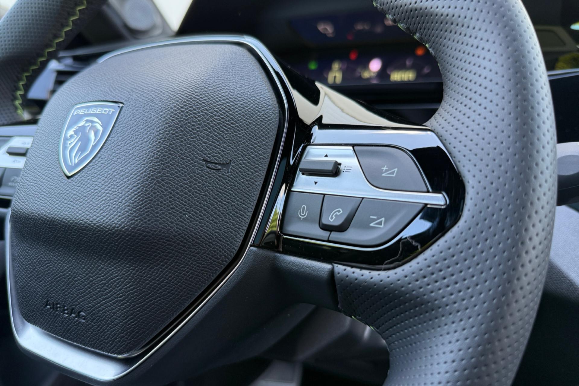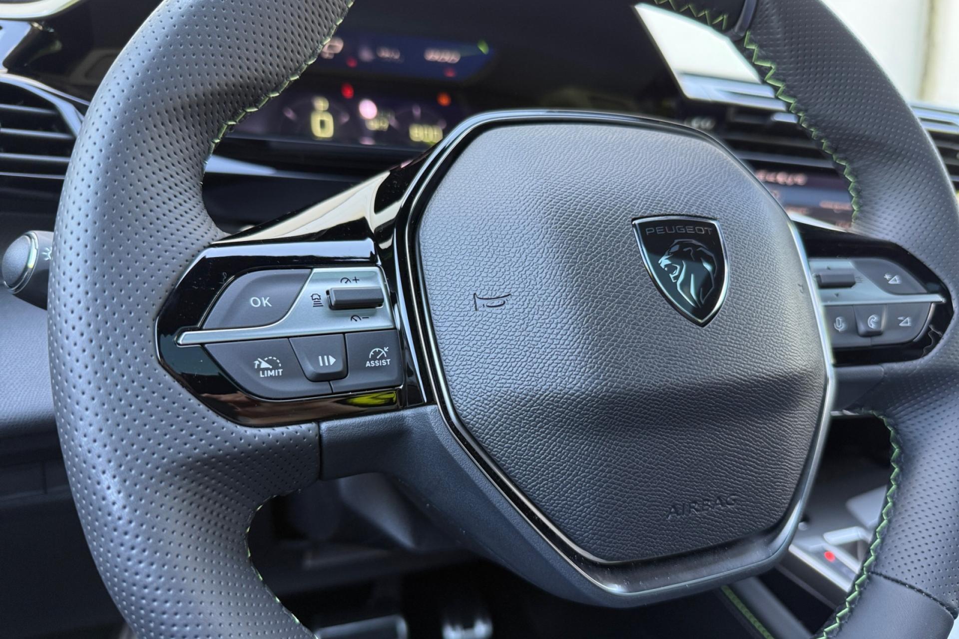 Accès et démarrage mains-libresAccoudoir central avant avec rangementAide au stationnement arrièreAide au stationnement avantAir conditionné à régulation automatique 2 zonesAirbags frontaux conducteur et passager adaptatifs (passager neutralisable), latéraux avant et rideaux avant et arrièreAlerte active de franchissement involontaire de ligne et bas côtéAlerte attention conducteurAllumage automatique des projecteursBandeau entre feux arrière noir brillantBanquette arrière rabattable 1/3-2/3Calandre avant spécifique Noir verni avec inserts chromés et écopes Noir BrillantCaméra de reculCiel de pavillon noirCommutation automatique des feux de routeDécor Aluminium sur panneaux de porteDétection de sous-gonflage des pneumatiquesDiffuseurs d'air aux places arrièreDirection assistée électriqueDriver Sport Pack : personnalisation du combiné spécifique, sonorité du moteur amplifiée et plus sportive ( désactivable)ESP (contrôle dynamique de stabilité ) + aide au démarrage en penteEssuie-glace à déclenchement automatiqueFeux arrière spécifiques avec allumage dynamique griffe à griffeFeux diurnes à LED avec signature lumineuseFixations Isofix (aux places latérales arrière)Fonction Mirror Screen (Apple Carplay / Android Auto ) sans filFrein de parking électriqueJupe arrière en noir brillant avec jonc chroméLécheurs de vitres noir brillantLève-vitres électriques arrière à fonctions séquentielle et anti-pincementLève-vitres électriques avant à commande séquentielle et anti-pincementLimiteur de vitesseModes de conduite Eco / SportNavigation connectée avec écran central tactile 10‘’ et i-Toggles virtuels personnalisablesPack Drive AssistPack Safety PlusPare brise teinté acoustiquePédaliers Sport et repose-pied en AluminiumPeugeot i Cockpit avec combiné d'instrumentation numérique 10'' personnalisablePlanche de bord avec jonc transversal peint, décor Alu et surpiqûres VertProjecteurs Matrix LEDReconnaissance étendue des panneaux de circulationRéglage lombaire conducteurRétroviseur intérieur électrochromeRétroviseurs extérieurs électriques avec clignotants à LED intégrés, dégivrants et rabattables électriquementSellerie tri matières tissu / TEP / New BelomkaSeuils de portes avant en aluminiumSièges conducteur et passager réglables en hauteurSmart Multidrive : personnalisation du combiné et éclairage d'ambiance LED intérieur associés aux modes de conduiteVitres latérales et lunette arrière surteintéesVolant à réglage manuel en hauteur et en profondeurVolant cuir