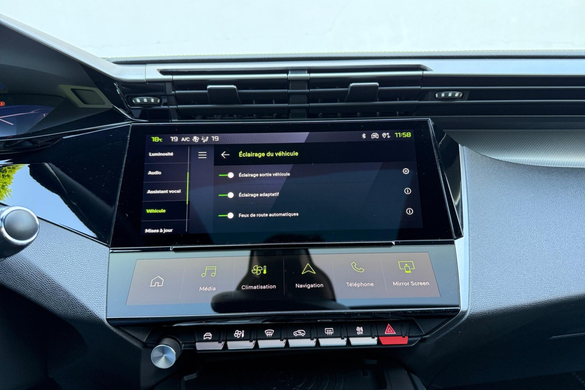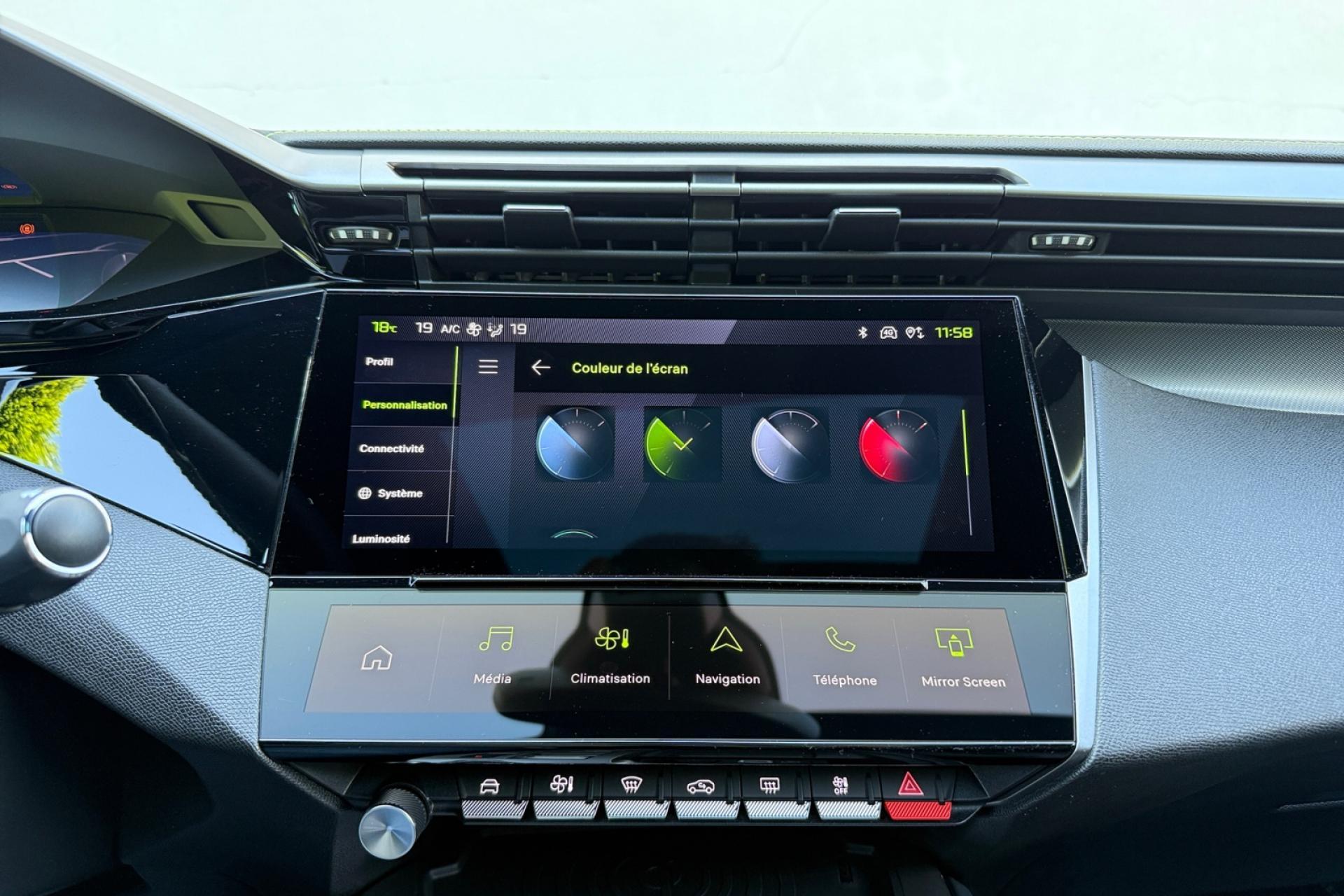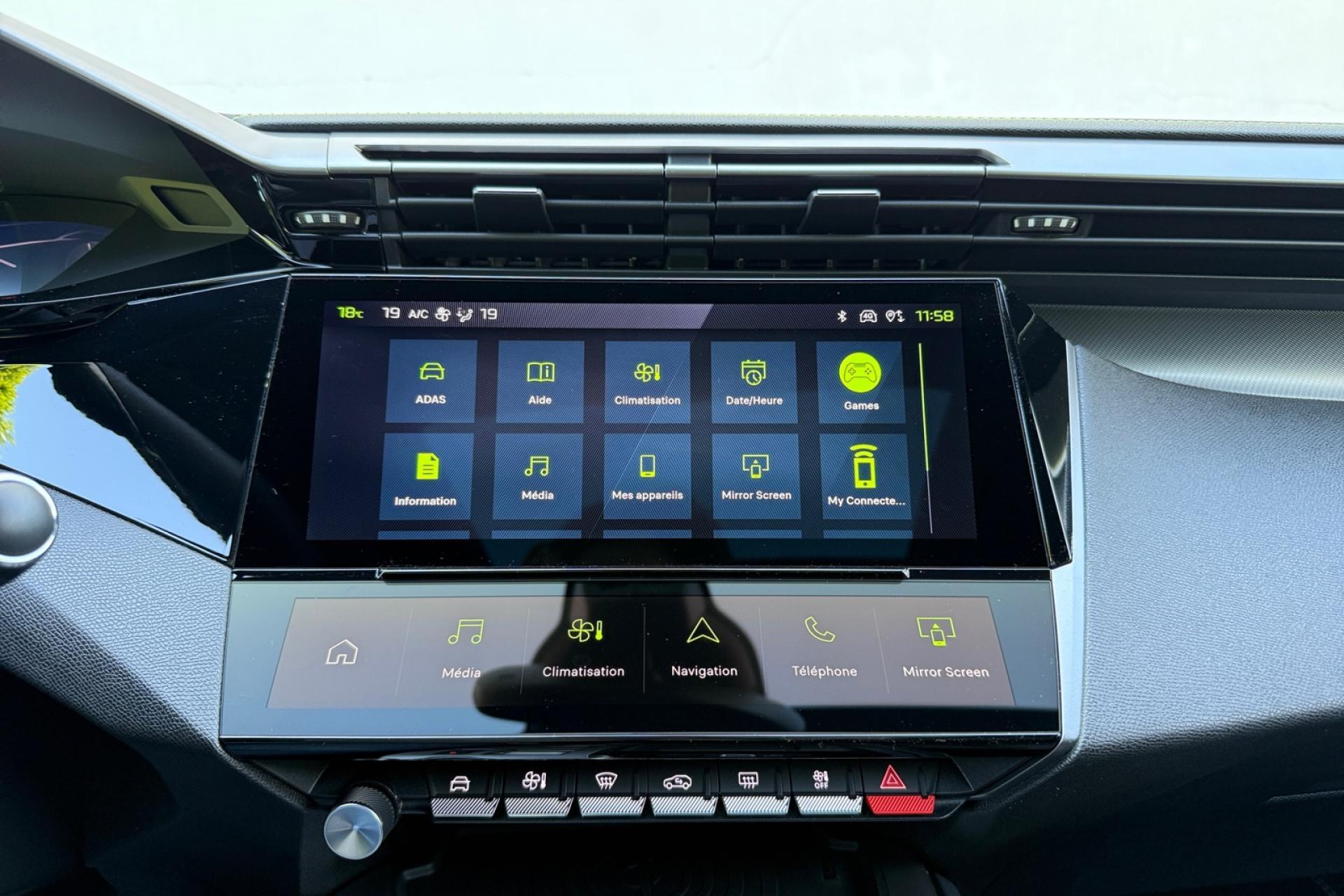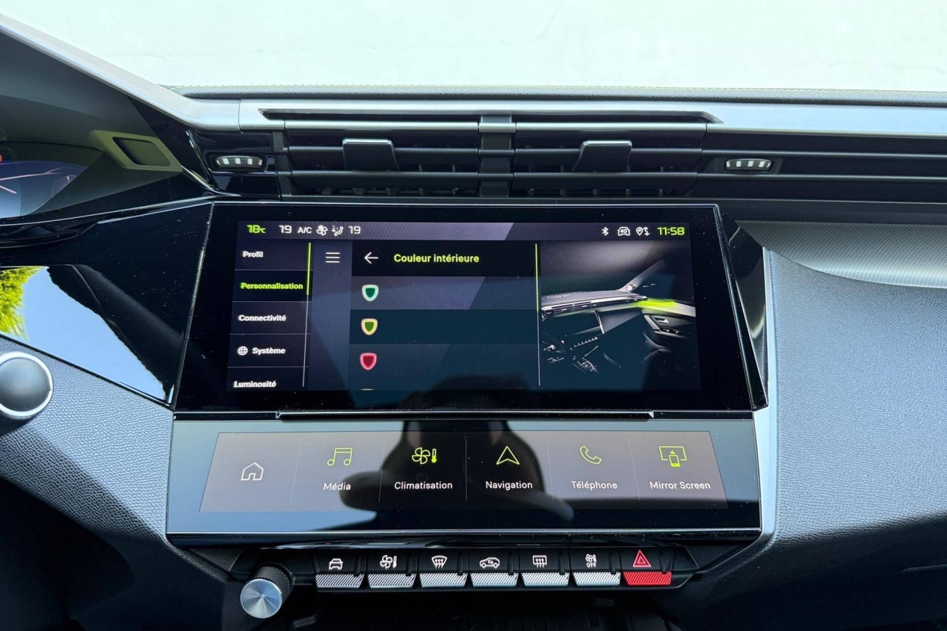 Accès et démarrage mains-libresAccoudoir central avant avec rangementAide au stationnement arrièreAide au stationnement avantAir conditionné à régulation automatique 2 zonesAirbags frontaux conducteur et passager adaptatifs (passager neutralisable), latéraux avant et rideaux avant et arrièreAlerte active de franchissement involontaire de ligne et bas côtéAlerte attention conducteurAllumage automatique des projecteursBandeau entre feux arrière noir brillantBanquette arrière rabattable 1/3-2/3Calandre avant spécifique Noir verni avec inserts chromés et écopes Noir BrillantCaméra de reculCiel de pavillon noirCommutation automatique des feux de routeDécor Aluminium sur panneaux de porteDétection de sous-gonflage des pneumatiquesDiffuseurs d'air aux places arrièreDirection assistée électriqueDriver Sport Pack : personnalisation du combiné spécifique, sonorité du moteur amplifiée et plus sportive ( désactivable)ESP (contrôle dynamique de stabilité ) + aide au démarrage en penteEssuie-glace à déclenchement automatiqueFeux arrière spécifiques avec allumage dynamique griffe à griffeFeux diurnes à LED avec signature lumineuseFixations Isofix (aux places latérales arrière)Fonction Mirror Screen (Apple Carplay / Android Auto ) sans filFrein de parking électriqueJupe arrière en noir brillant avec jonc chroméLécheurs de vitres noir brillantLève-vitres électriques arrière à fonctions séquentielle et anti-pincementLève-vitres électriques avant à commande séquentielle et anti-pincementLimiteur de vitesseModes de conduite Eco / SportNavigation connectée avec écran central tactile 10‘’ et i-Toggles virtuels personnalisablesPack Drive AssistPack Safety PlusPare brise teinté acoustiquePédaliers Sport et repose-pied en AluminiumPeugeot i Cockpit avec combiné d'instrumentation numérique 10'' personnalisablePlanche de bord avec jonc transversal peint, décor Alu et surpiqûres VertProjecteurs Matrix LEDReconnaissance étendue des panneaux de circulationRéglage lombaire conducteurRétroviseur intérieur électrochromeRétroviseurs extérieurs électriques avec clignotants à LED intégrés, dégivrants et rabattables électriquementSellerie tri matières tissu / TEP / New BelomkaSeuils de portes avant en aluminiumSièges conducteur et passager réglables en hauteurSmart Multidrive : personnalisation du combiné et éclairage d'ambiance LED intérieur associés aux modes de conduiteVitres latérales et lunette arrière surteintéesVolant à réglage manuel en hauteur et en profondeurVolant cuir