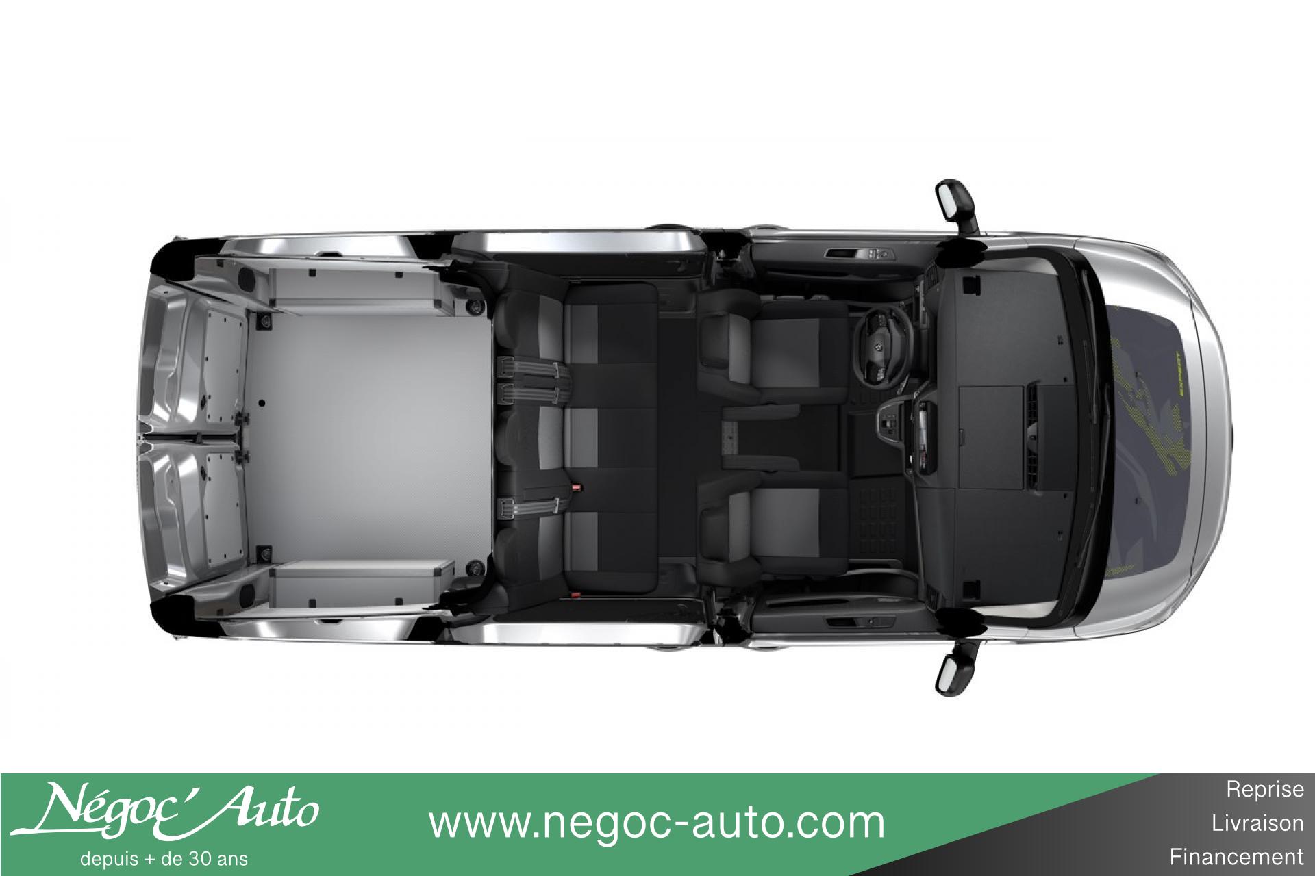 2 prises USB type-C4 anneaux d'arrimage en zone de chargementABS (Antiblocage de roues)Aide au démarrage en côteAirbag frontaux conducteur et passagerAirbags latéraux avant tête/thoraxAntipatinage (ASR)Assistance au freinage d'urgenceBanquette arrière avec fixations ISOFIX i-Size & Top Tether sur assises gauche et centraleBanquette fixe 3 places en rang 2 avec appui-tête réglables et 2 accoudoirs, position unique avec coffre de rangement amovible sous assises gauche et centrale (accessible depuis habitacle) et avec zone pour charge longue sous assise droite (accessible par la zone de chargement)Cloison pleine PVC avec vitre plexiglassCommandes au volant du système audio et du régulateur-limiteur de vitesseContrôle de trajectoire ESPDécors adhésifs extérieurs Tech EditionDétection de sous-gonflage indirecteEcran tactile 10'' HD couleur avec Navigation 3D connectée , Reconnaissance vocale, Apple CarPlay et Android auto sans filEssuie-glaces avant automatique avec détecteur de pluie et allumage automatique des feuxGarnitures pavillon habitacle en rang 2Jantes alliage 17'' diamantéesLève vitres avant électriques à impulsionPack 3 Caméras + Rétroviseur numérique (Aide au stationnement avant, arrière et latérale, Projecteurs antibrouillard, Système de surveillance d'angle mort, Système de rétrovision arrière et latérale)Pack Confort (Accès et démarrage mains-libres, Climatisation automatique bi-zone, Frein de stationnement électrique, Recharge sans fil pour smartphone, Volant en cuir chauffant)Pack Hiver (Sièges avant chauffants)Pack Look ExtérieurPack Sécurité (Aide au maintien dans la voie, Commutation automatique des feux, Reconnaissance des panneaux, Système de freinage d'urgence, Système de surveillance)Pare-brise athermiquePare-brise feuilleté et acoustiquePhares Full LED avant avec éclairage diurne LEDPorte latérale coulissante droite vitréePortes battantes arrière tôlées 50/50 à ouverture 180°Prise 12v dans la boîte à gantsProtections latérales intérieures Isorel (rang 2/3)Régulateur et limiteur de vitesseRétroviseur intérieur prismatiqueRétroviseurs extérieurs électriques et dégivrantsRevêtement de sol en TPO dans l'habitacleSécurité enfants manuelleSellerie Tissu bi-ton Noir et GrisSiège conducteur individuel avec appui-tête réglable en hauteur et avec accoudoir - Réglage : longueur, inclinaison, réhausse et rabattable (si 1 PLC) ou lombaire (si 2 PLC)Vitres fixes teintées en rang 2Volant réglable en hauteur et en profondeur