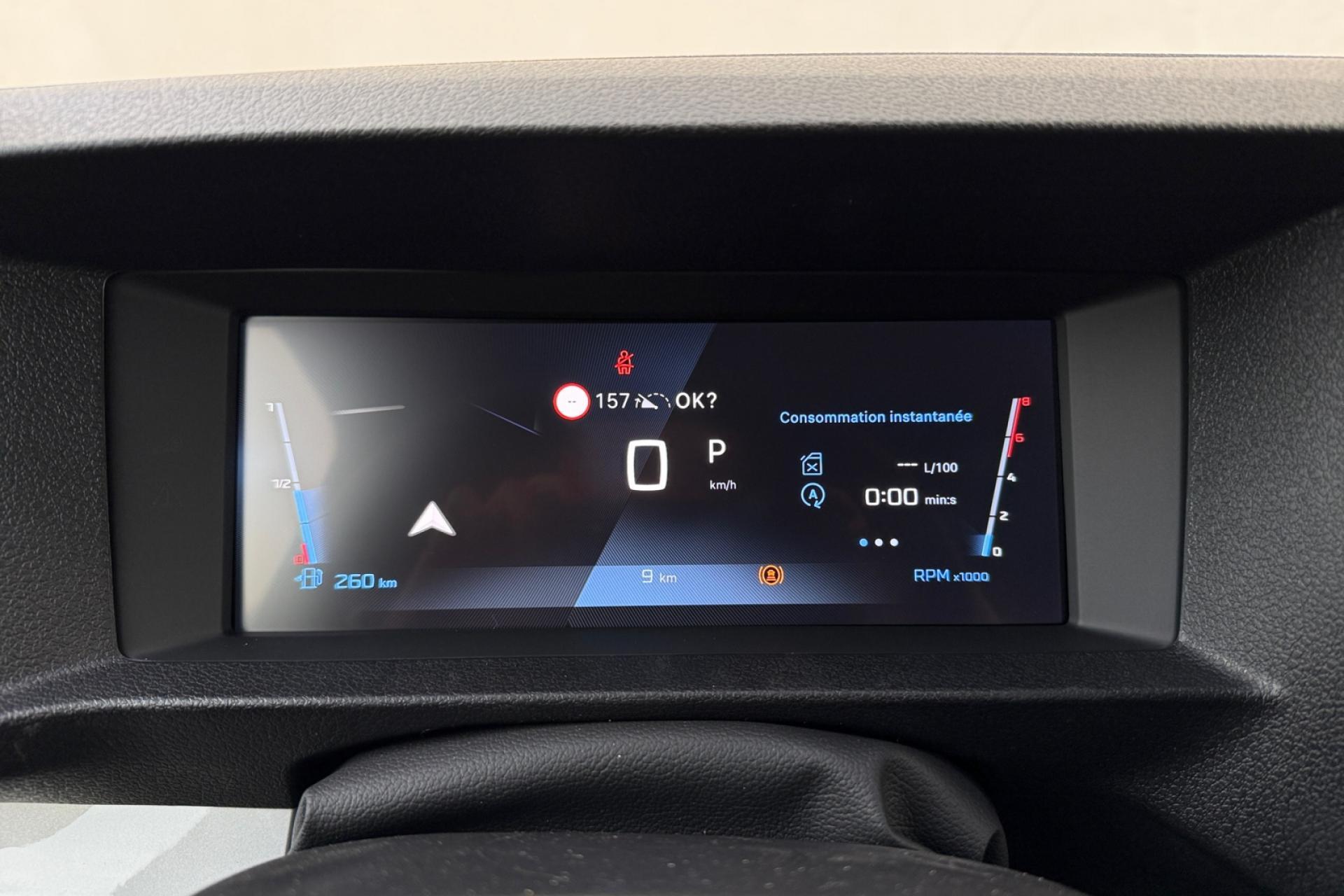 ABS (Antiblocage de roues)Aide au démarrage en côteAide au stationnement arrièreAirbag frontaux conducteur et passagerAntipatinage (ASR)Assistance au freinage d'urgenceCloison pleine tolée de séparationCommande e-Toggle et palettes au volantCommandes de l'autoradio au volantPack Premium Connect (Navigation GPS, Caméra de recul, Radar avant et arrière, Détection d'angles morts, Combiné numérique 10, Rétroviseurs rabattables, Antibrouillard)Contrôle de trajectoire ESPDétection de sous-gonflage indirecteEssuie-glaces avant automatique avec détecteur de pluie et allumage automatique des feuxLève vitres avant électriques à impulsionPack Sécurité (Aide au maintien dans la voie, Commutation automatique des feux de route, Reconnaissance des panneaux, Système de freinage d'urgence)Pare-brise feuilleté, athermique et acoustiquePorte latérale droite coulissante tôléePortes battantes arrière tôlées 50/50 à ouverture 180°Projecteurs H15 avec feux diurnes à lampesRang 1 : banquette passager 2 places avec appuie-têtes réglables en hauteur et rangement sous assiseRégulateur et limiteur de vitesseRétroviseurs extérieurs électriques et dégivrantsRevêtement de sol en TPO dans l'habitacleSellerie Tissu bi-ton Noir et GrisSiège conducteur individuel avec appui-tête réglable en hauteur et avec accoudoir - Réglage longueur, inclinaison, réhausse et lombaireVerrou de blocage de porte arrière gaucheVolant réglable en hauteur et en profondeur