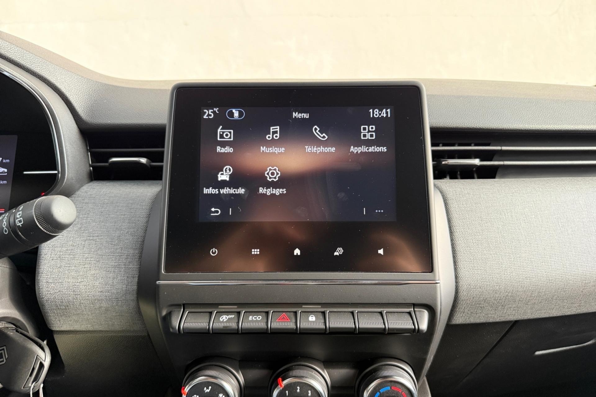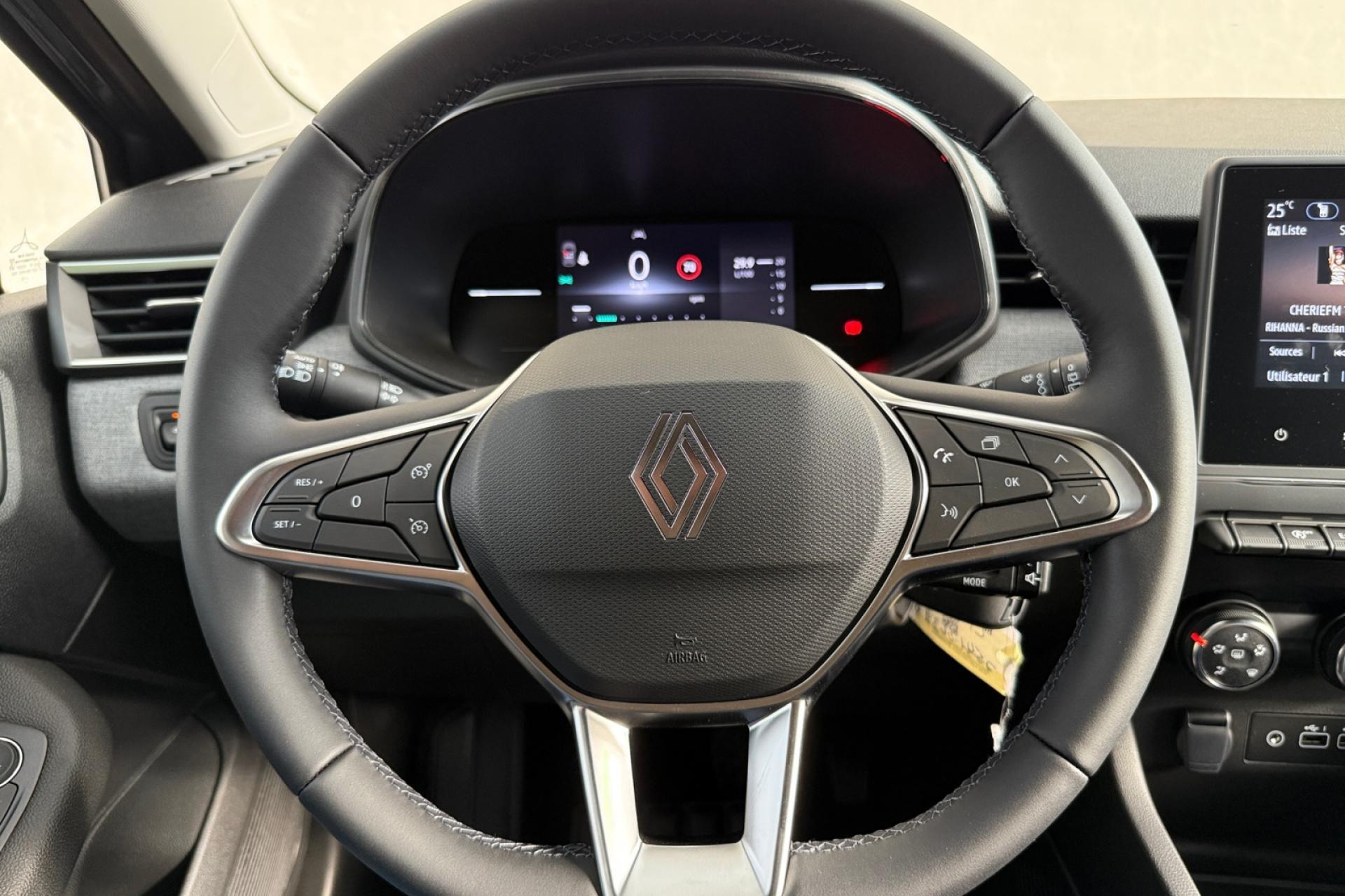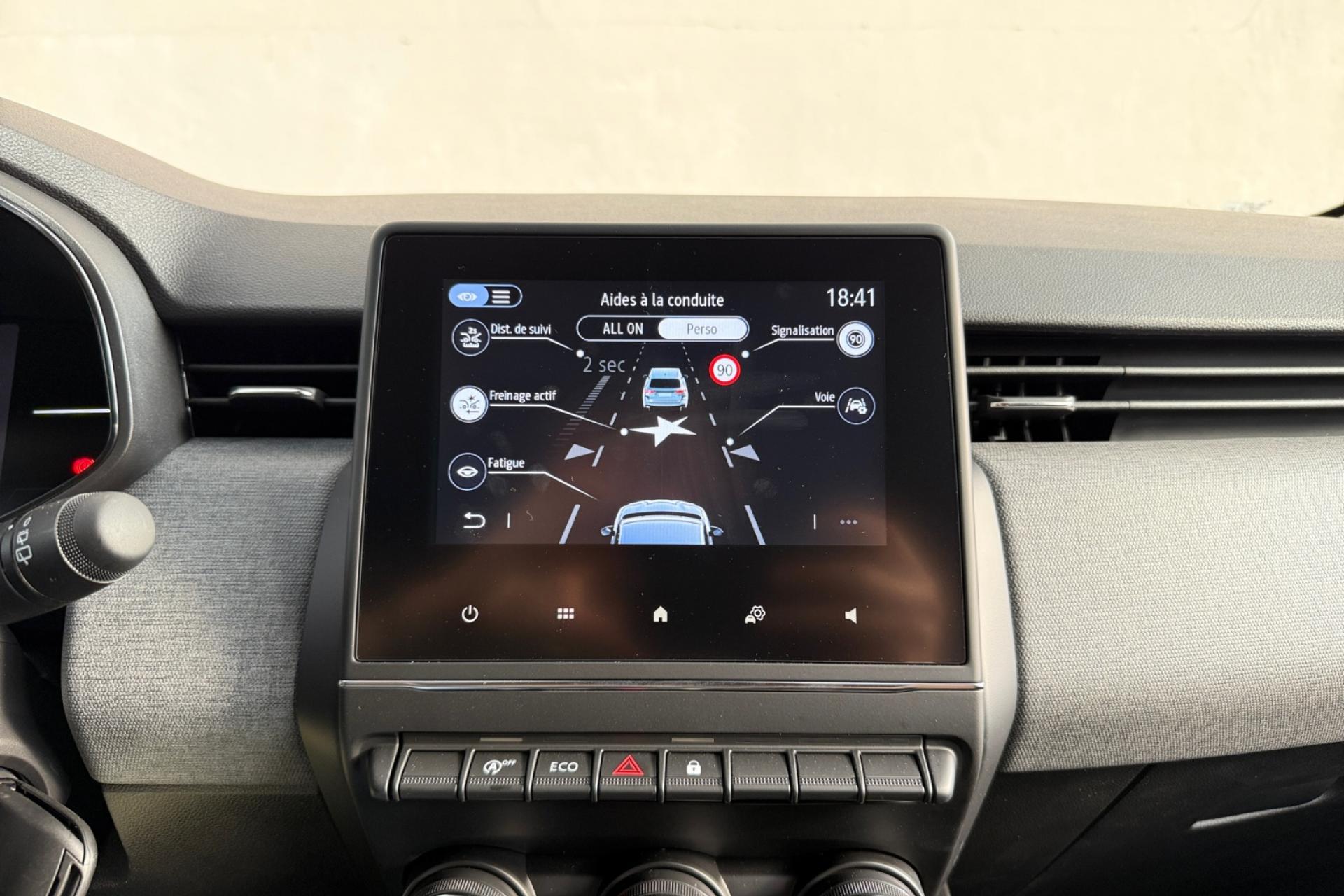 6 haut-parleursABS avec aide au freinage d'urgenceAérateurs latéraux chrome satinéAide au démarrage en côteAide au stationnement arrièreAirbags frontaux et latéraux à l'AVAirbags rideaux de têtes aux places avant et arrièreAlerte attention conducteurAlerte de franchissement de ligneAlerte distance de sécuritéAllumage automatique des essuie-glacesAllumage automatique des projecteursAppuie-tête AV anti "coup du lapin"Appuis-têtes avant fin et 3 appuis-têtes arrière réglables en hauteurAssistance au maintien de voieBanquette arrière rabattable 40/60Bluetooth, 2 USB, 1 AUXBoîte à gants ferméeBouton de déconnection ADAS / my safety switchClimatisation manuelleCompteur numérique couleur 7” personnalisableContrôle électronique de stabilité (ESC)Désactivation manuelle de l'airbag passagerDirection assistée électrique variableEasy link 7” : radio avec écran tactile 7” haute résolution (compatible avec Android Auto et Apple CarPlay)Eclairage intérieur avant avec 2 liseuses halogèneEntourage levier de vitesses chromésFeux arrière à LEDFeux de jour à LED intégrés aux projecteursFixation ISOFIX sur siège passager avantFixations Isofix aux places latérales arrièreFrein à main manuelFreinage actif d’urgence, avec détection des voitures, motos, piétons, cyclistes (jour et nuit)Inserts décoratifs sur le volant à effet "chromé-satiné"Jantes alliage diamantées 16” boa vistaLève-vitres arrière électriques impulsionnelsLimiteur de vitesseLogo Renault chromé, avec bandeau supérieur de calandre Noir BrillantProjecteurs avant 100% à LED Performance éclairage Renault LED pure vision avec faisceau allongé et élargiRéception radio numérique (DAB+ et traditionnels FM/AM)Régulateur de vitesseRéplication smartphone sans filRétroviseur intérieur jour et nuitRétroviseurs extérieurs couleur noirRétroviseurs extérieurs électriques et dégivrantsSellerie tissu gris motifs 3D twidaSiège conducteur avec réglage en hauteurSystème de surveillance de pression des pneusVitres avant électriques avec descente et remontée à impulsionVitres latérales et lunette arrière surteintéesVolant en textile enduit grainé cousuVolant multifonctionVolant réglable en hauteur et en profondeur