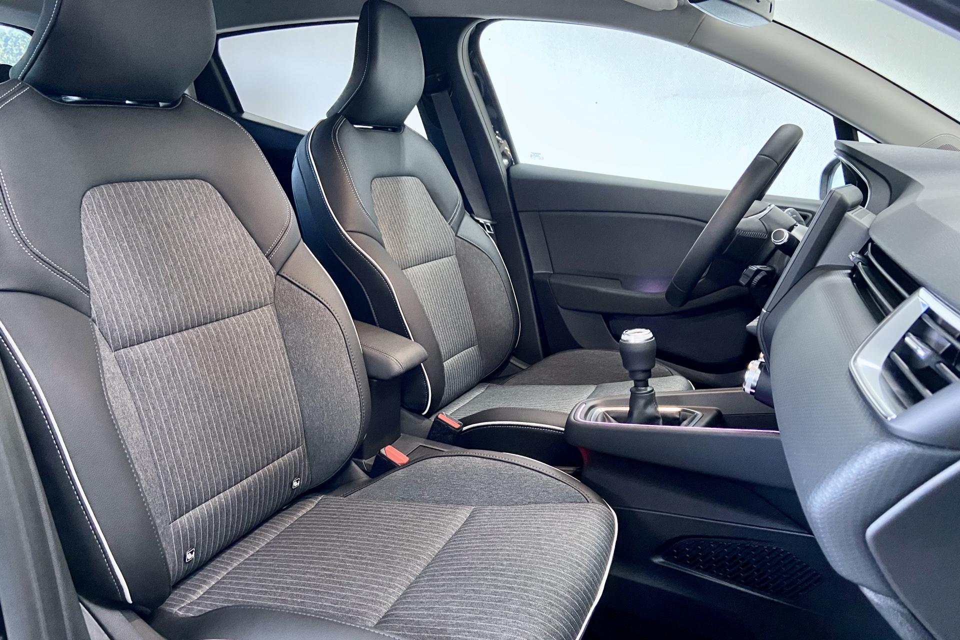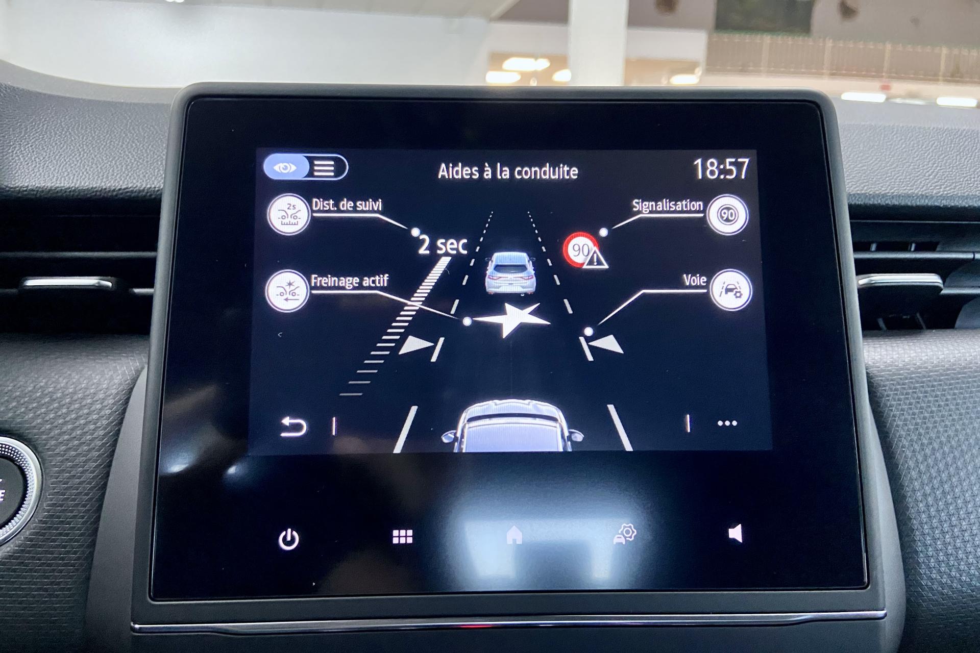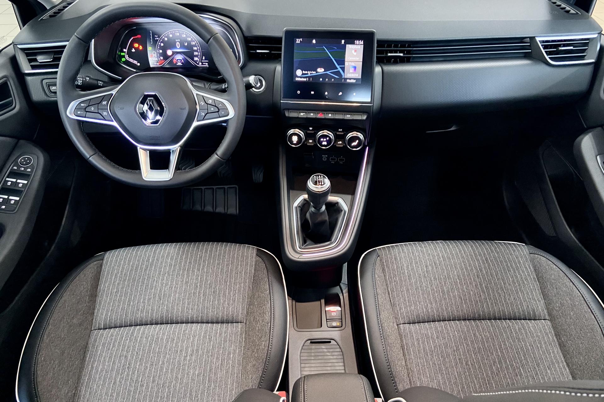 ABS avec aide au freinage d'urgenceAccoudoir avant, coulissantAide au démarrage en côteAirbags frontaux et latéraux, conducteur et passager avantAlerte de perte de pression des pneusAlerte de sortie de voie avec volant haptiqueAlerte de survitesse avec reconnaissance des panneaux de signalisationAlerte distance de sécuritéAllumage automatique des essuie-glacesAllumage automatique des projecteurs en fonction de la luminositéAssistance au maintien de voieBandeau supérieur des portes avant en matériau mousséBanquette arrière à dossiers rabattables, 60/40Boîte à gants ferméeCanule d'échappement chroméeCarte Renault « mains libres » (accès et démarrage)Ciel de Pavillon grisClimatisation automatiqueConsole centrale avant flottante, avec gainage en matériau softContrôle électronique de stabilité (ESC)Désactivation manuelle de l'airbag passagerEASY LINK 7” et navigationEclairage avant et arrière Full LED Pure Vision avec signature lumineuse en forme de « C »Eclairage d’ambiance : lumière personnalisable sur console centrale et accoudoir des portes avantFrein de parking électrique avec fonction Auto-HoldFreinage actif d’urgence, avec détection des voitures, motos, piétons, cyclistes (jour et nuit)Grille de calandre chroméeHarmonie intérieure noireIndicateur de changement de vitessesInserts en chrome satiné sur le volant et l’embase de levier de vitesseJantes alliage 16" Philia Diamantées GrisesJoncs chromés sur bandeau supérieur de calandreJoncs noir brillant sur protections inférieures de porteLécheur de vitres latérales chromeLève vitres électriques avant et arrière impulsionnelsLiseuses AV à LED Mode EcoPommeau de levier de vitesses en cuirProtections inférieures de porte avec signature CLIORégulateur et limiteur de vitesseRétroviseur intérieur électrochromatique (automatique jour/nuit)Renault MULTI-SENSE, personnalisation des modes de conduites et ambiance intérieures (3 mode pré-définis: MY SENSE, ECO, SPORT)Sellerie specifique noir / grise a rayures blanchesSièges confort, assise élargie et maintien latéral amélioréSystème Isofix aux places latérales arrière et passager avantTableau de bord avec écran numérique et personnalisable 7”Volant multifonctions réglable en hauteur et en profondeurVolant TEP